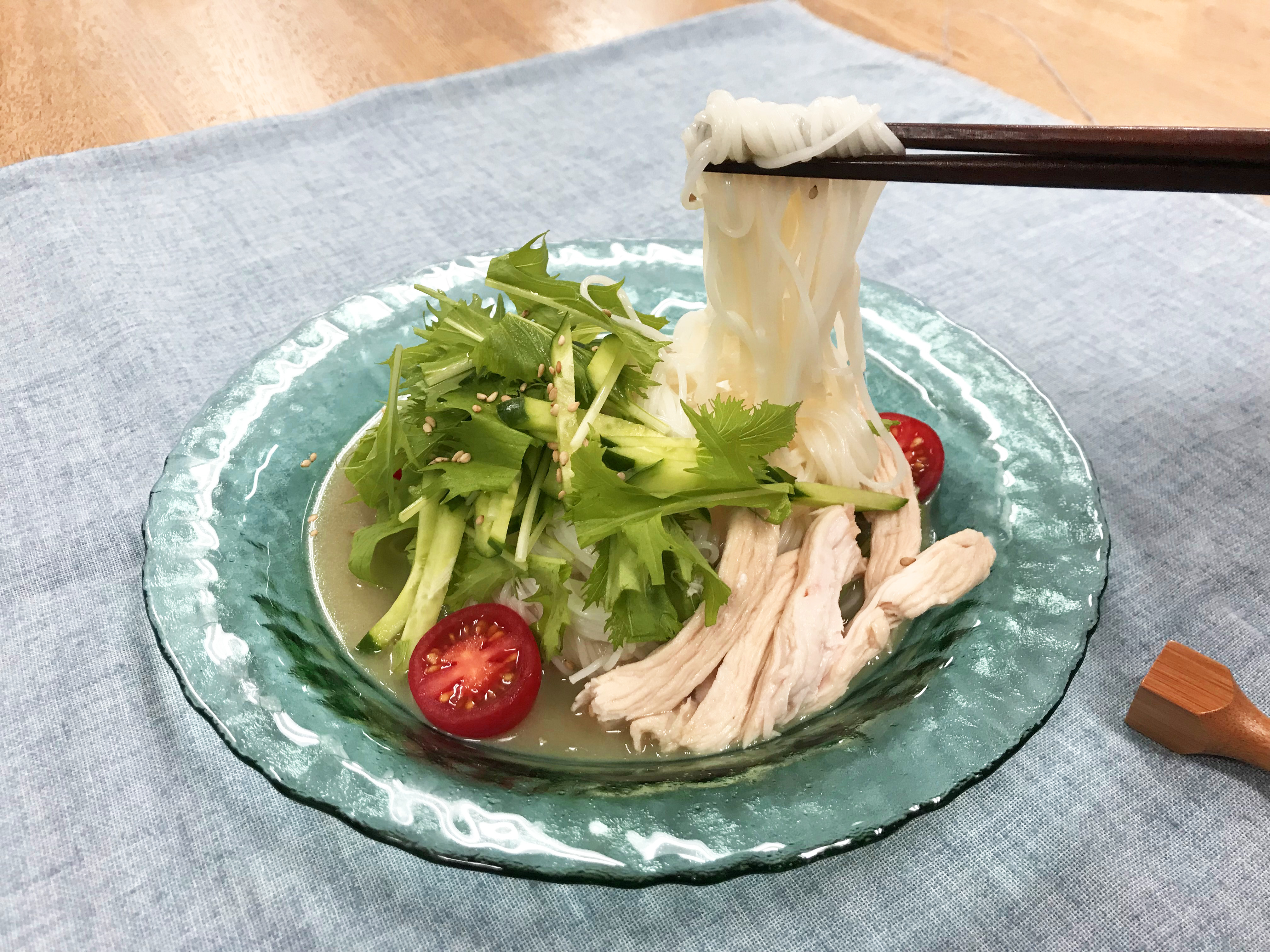 【野菜たっぷり糀甘酒の冷やし白湯風そうめん】