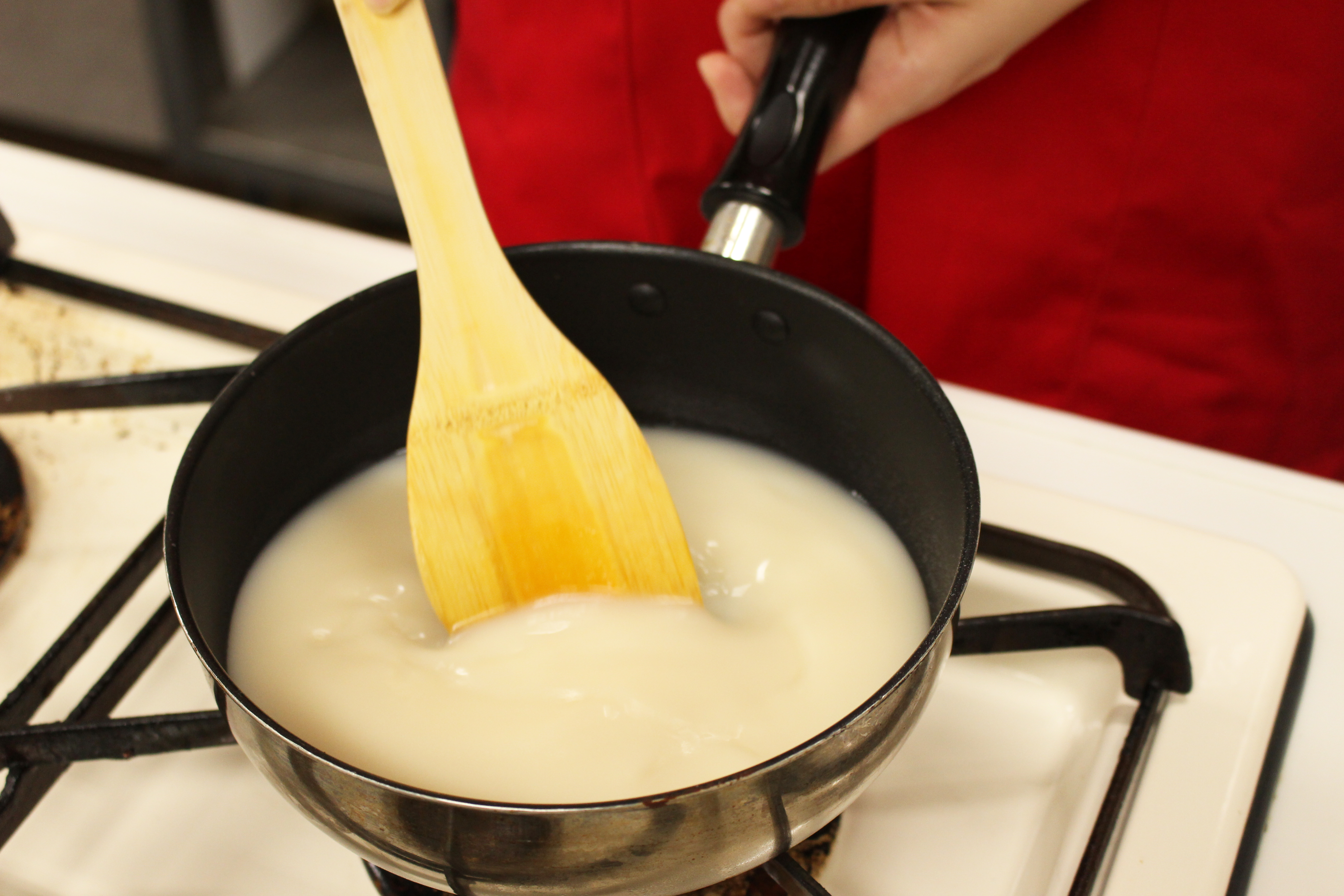 沸騰したら弱火で2分ほど混ぜながら煮溶かしていきます。