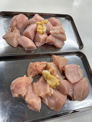 むね肉を使用するとより違いが分かると思います。