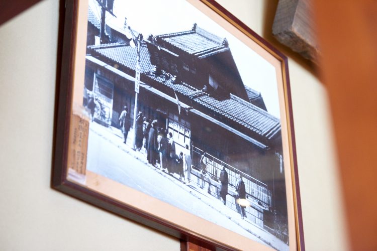 船橋屋 亀戸天神前本店には、明治期の船橋屋に並ぶ人々の写真なども飾られています。