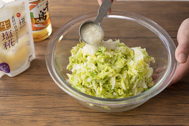 「乳酸発酵のものよりも酸味がやわらかなので、そのままでも食べやすいんですよ。塩糀を加えることで春キャベツの甘みがさらに引き立ちますし、まろやかなうまみも生まれます」