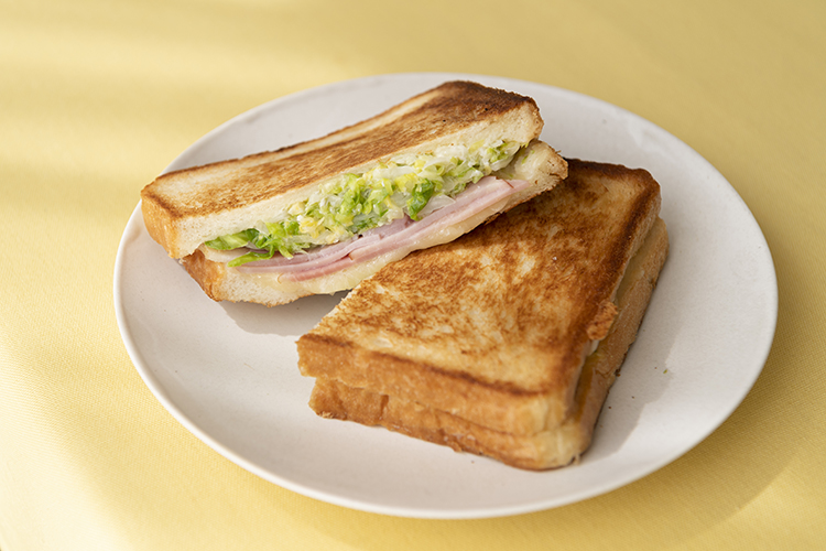 キャベツがぎっしりと挟まって、食べごたえもうれしい「和風ザワークラウトとハムのホットサンド」。