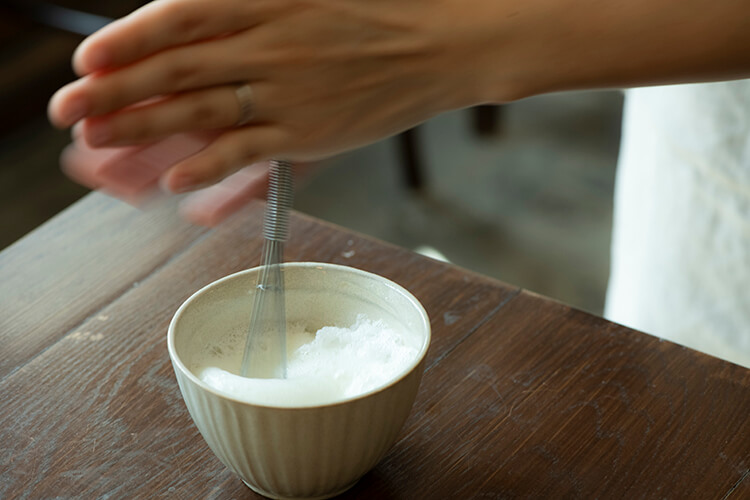 20分以上もかかる方もいるという泡立ても、熟練スタッフの手にかかると、2〜3分であっという間に