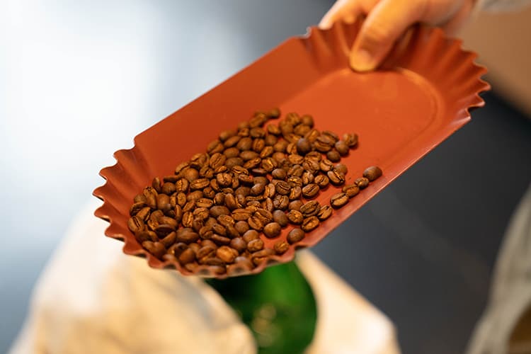 いくつもの焙煎プロファイルをテストしたサンプルロースト豆。