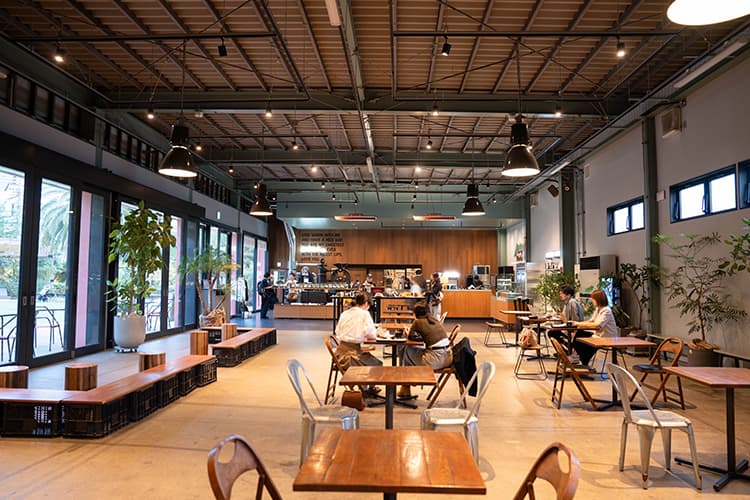 「お店の場所を決めるまで、いくつも候補地を見て回りました。サンフランシスコのカフェ文化にあるような、西海岸らしい明るくて開放的な空間にしたかったんです。広々としたこの公園の景色を見たとき、“ここだな”と思いました。都会にいながら風を感じられる、日本じゃないみたいな開放感があります。店舗デザインも、そうした世界観に合わせて仕上げました」
