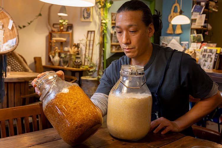 「“オーガニック”への理解は人それぞれですが、僕自身、オーガニックは、いろんな生命がかかわることでできるものだと思っているんです。例えば、大豆の根っこにはチッ素を固定する菌がいて、その菌の働きで大豆が育つ。発酵食品も同じで、手間をかけることは面倒ですが、目に見えないものやエネルギーが集まって、味噌や醤油といった食材が生まれる。その手間や、かかわり合いの楽しさが発酵やオーガニックにはあると思っています。昔は“オーガニックはこうであるべき!”と躍起になっていたこともありましたが、今はこだわりすぎないようにしています。頑張りすぎず、自分の思いを込めることのほうが大切で、素材が良ければいいのではなく、そこにかかわる人が大事だと思っています」