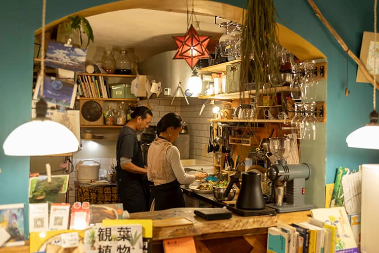 「カフェ ココハネ ベジと発酵ごはん」は、永谷さんとパートナーの木部さんのふたりで料理やサービスを手掛けています。料理は注文を受けてから仕上げるため、少し時間はかかるものの、手頃な価格で美味しい発酵料理やベジタリアン料理が楽しめると、遠方から通う人も多いそう。