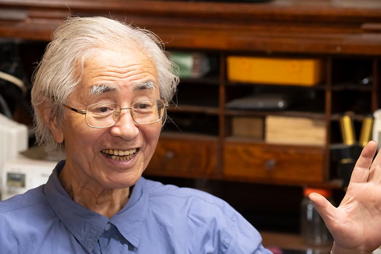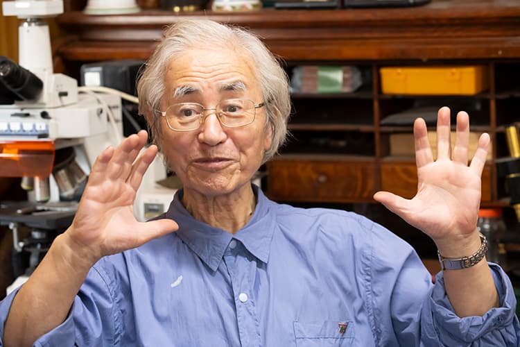 左 半世紀以上にわたって土を研究してきた、金澤晋二郎博士。