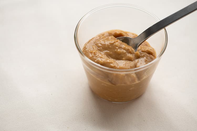 なめらかなペースト状の「しょうゆみりん酒粕」。保存容器やジッパーつきの保存袋に入れ、冷蔵で2週間ほどを目安に保存できる。