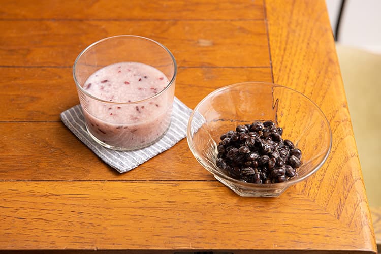 「黒米を使った甘酒は、ウェブサイトでたまたま見つけて。黒大豆の納豆は、ごはんのお供なら甘い煮豆を食べるより、もっと食べる機会を増やせると思って取り入れました。どちらも調理の必要がなく、手軽にとれるので忙しい季節には助かります」