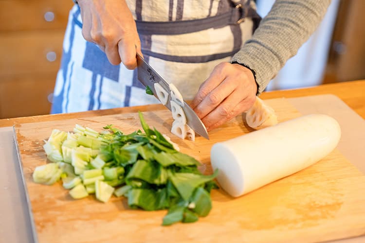 れんこんは五臓を整え、チンゲンサイは水の流れを整えてくれる