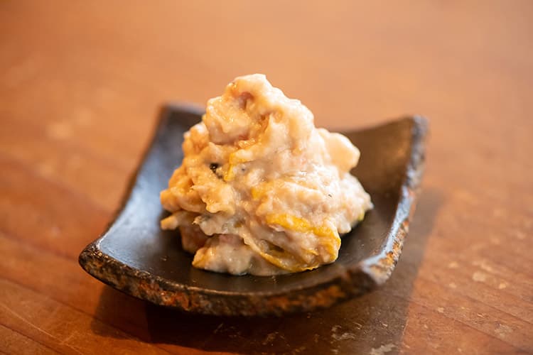 「あざらって、宮城県出身のお客さんでも知らない人がいるくらい、気仙沼地方だけに伝わる料理みたいですね。名前になじみがないから、メニューリストのなかでもひっそりとしているけれど、興味をもって食べてくださったお客さんからは『あざら、お願い!』と、一番に指名されることも多いんですよ」