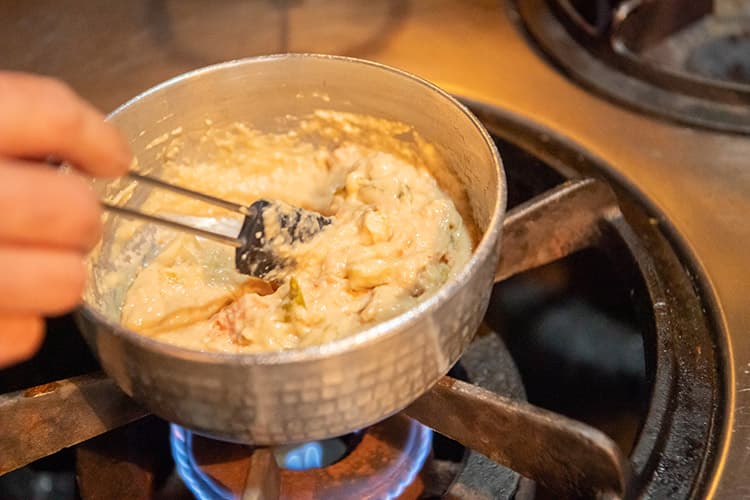 材料も作り方もいたってシンプル。混ぜて煮るだけの手軽さで、見た目も素朴です。だからこそ、主役を引き立て、お酒を引き立て、酒場の時間に寄り添う一皿になるのでしょう。
