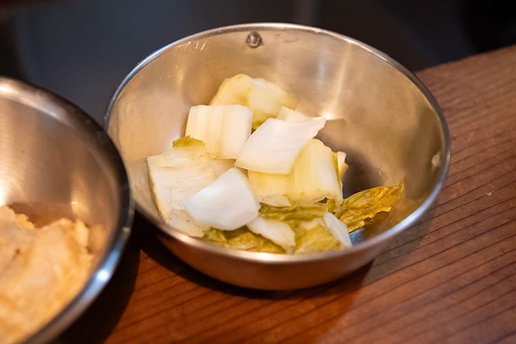 白菜の漬物は自家製。重量の2.5〜3%の塩をまぶして漬けたもの。