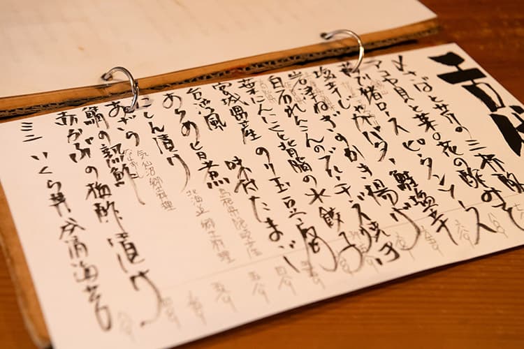 サケフクのメニューは、2週間ほどで入れ替わるそう。こんなところにも、季節の食材を無駄なく、工夫して利用するという高橋さんの料理哲学が表れているのかもしれません。