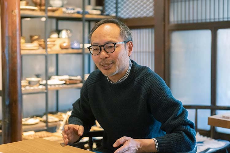 「『テマヒマ』を始める前は通販会社でファッションやEC関係の仕事をしていました。趣味で全国の窯元を巡っていましたが、生業にするつもりはありませんでした。ある時、社内で早期退職の募集があったんですが、マネージャーの僕は対象外で。『惜しい!』と思った瞬間に、自分の中に辞めたい気持ちがあると気づいて(笑)。勢いで仕事を辞めて、お店をやろうとそこから2人で物件探しを始めました。発酵と民藝だけでなく、暮らし全般を発信するには古民家がいいと探していたところ、紆余曲折があって今のこの建物とご縁がありました」と準さん。