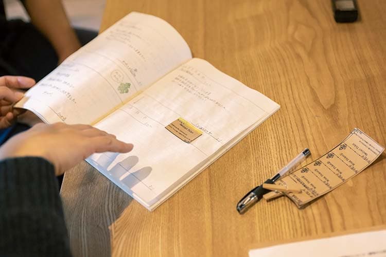 「もしかしたらアプリ化できるかもしれませんが、あえて紙のチケットでアナログにしています。誰に贈るかをお客様自身にノートへ書いてもらう。ノートはチケットの購入に関わらず誰でも見られるようにしていて、『ほっと一息つきたいママさんへ』『仕事の合間に立ち寄った人へ』など、宛先は様々。ノートの中でコミュニケーションが生まれるんです。なかには『私のことを言ってくれている』と涙するお客様もいました。送り主は何年か前の自分に宛てた手紙のつもりだったそうですが、その人の過去は誰かの今でもある。誰かが受け取った瞬間に利他が発生する。時間を超えたコミュニケーションが生まれる面白さがあります。5枚綴りなので、購入した人は『あのチケットどうなったかな?』と次に来たときの楽しみにもなる。この『思いやりチケット』は発酵にも通じていて、楽しんで“待つ”営みでもあります。