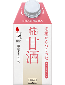 米と米糀のデンプンが糖化された自然な甘みの糀甘酒です。砂糖を使わない、アルコール0%の糀甘酒は、離乳後期の赤ちゃんをはじめ、妊娠中、授乳中の方も安心して飲むことができます。料理に使ったり、毎日飲む方にうれしい500mlの大容量タイプはキャップ付きで注ぎやすい容器です。