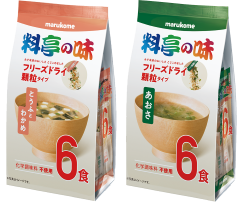 マルコメ株式会社(本社:長野市、代表取締役社長:青木時男)は、料亭の味ブランドからフリーズドライの顆粒みそ「料亭の味 フリーズドライ顆粒みそ」、即席みそ汁「フリーズドライ顆粒みそ汁 料亭の味 とうふとわかめ/あおさ/しじみ」、「カップ フリーズドライ顆粒みそ汁 料亭の味 とうふとわかめ/あおさ」、「お徳用 フリーズドライ顆粒みそ汁 料亭の味 とうふとわかめ/あおさ」を9月上旬より全国で販売します。
