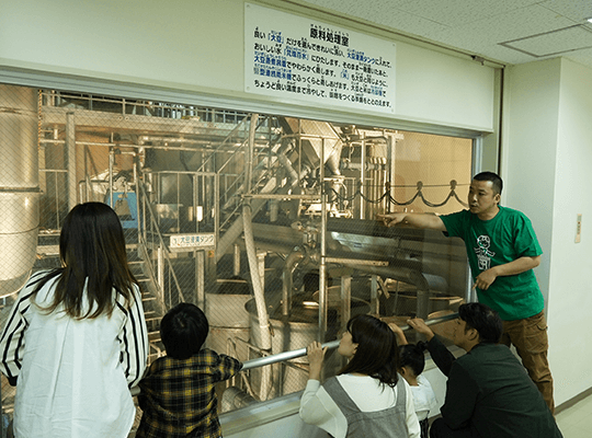 直売所向かいに位置する「かねさ生みそ工場」では、無料で工場見学を行います。津軽みその生産ラインやパッケージングなどの製造工程を楽しく見学できます。