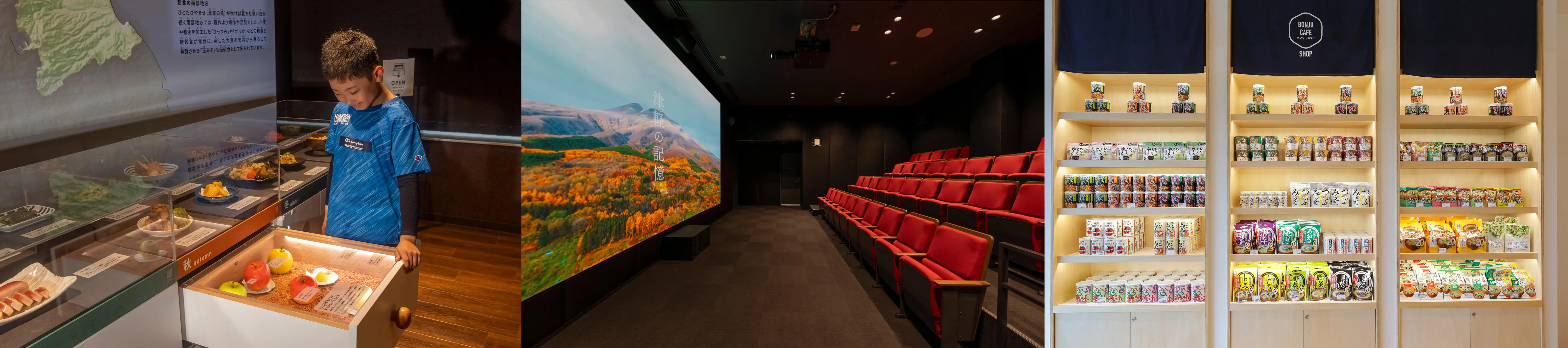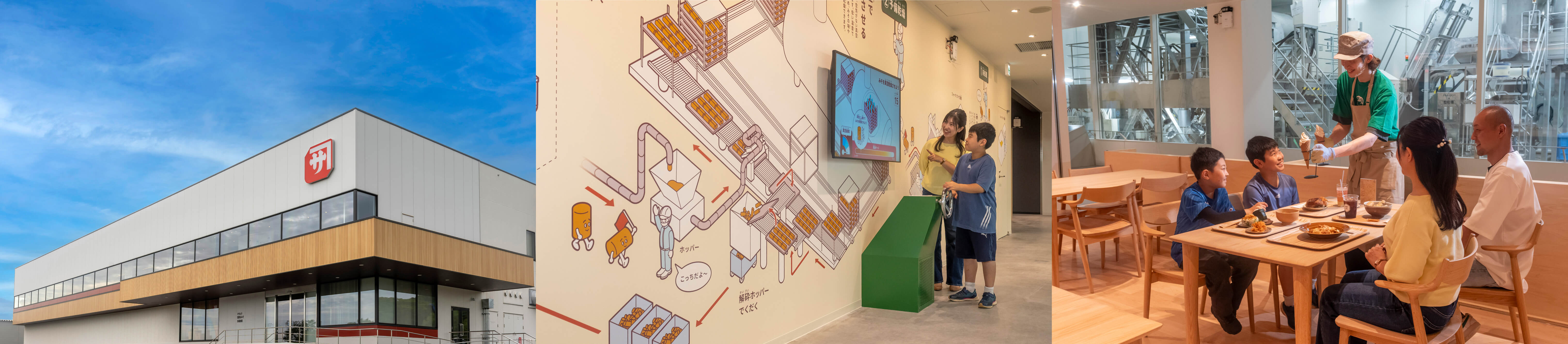 かねさ顆粒みそ工場は新たな生産拠点としてだけでなく、一般の方が楽しめる体験型施設「顆粒みそ体験館」を併設しています。地元青森の豊かな自然や人々の営みを取材した映像を視聴できる48席のシアタールームをはじめ、津軽の食文化に触れることができる展示コーナー。独自製法の顆粒みそ生産ラインを見学できるコース。青森を“第2の故郷”と呼ぶ料理家の栗原心平氏が監修した、ここでしか味わえないオリジナルメニューを楽しめるカフェ。顆粒みそをつかった全ての商品を購入できるショップなど津軽の魅力を実体験できるオープンファクトリーとして設立しました。なぜ、生みその風味が顆粒で味わえるのか?その秘密を垣間見ることができる見学通路はゲームコンテンツで楽しみながら学ぶことができます。新工場は、成長著しい顆粒みその安定供給を図るべく、従来の約2倍に相当する1億食の生産能力を兼ね備えています。