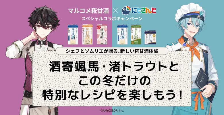 マルコメ糀甘酒×にじさんじ【酒寄颯馬・渚トラウト】 スペシャルコラボキャンペーン実施中