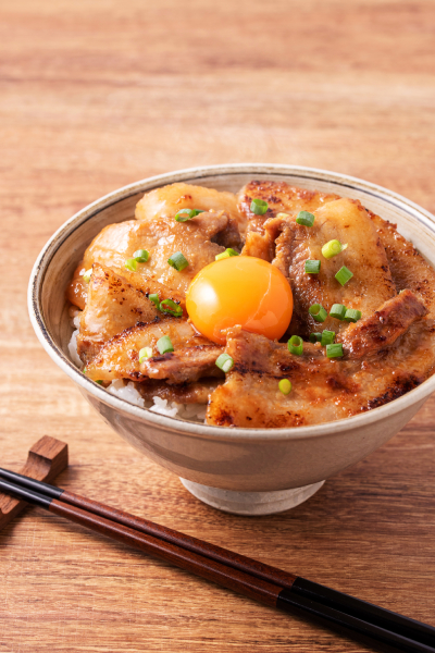 丼にご飯と共によそい、卵黄を乗せ、刻みねぎを振る。