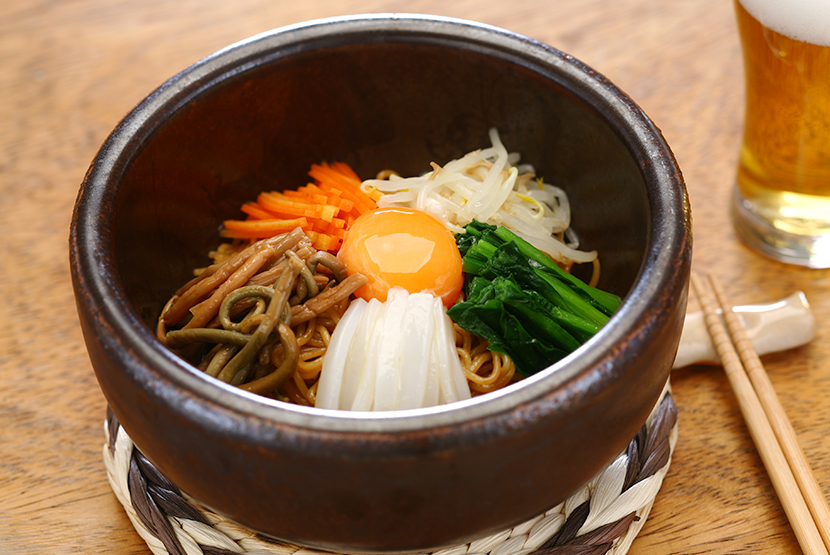 表示のゆで時間の2分前にピーマン、パプリカ、ミニトマトを加え、煮汁がほどよく飛ぶまで炒める。「料亭の味 フリーズドライつぶみそ」(分量外)で味をととのえ、器に等分に盛り付け、お好みで刻みパセリを振る。
