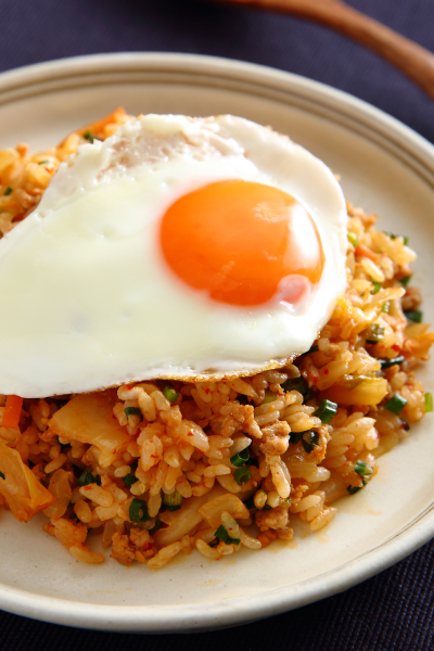 フライパンにサラダ油を熱し、卵を割り入れ、目玉焼きを作り、取り出す。